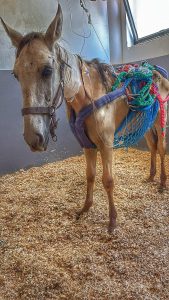 Hemos tenido que ingresar en el hospital de la UAB a un potro de un año al que hemos bautizado Alado que quizás no sobreviva, el hambre y la sed le han dañado el riñón y no puede mantenerse en pie.