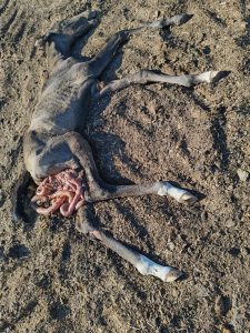 Las fotos que nos aportó no dejaban lugar a dudas, tantos caballos muertos, muchos cerca de los abrevaderos vacíos, otros ya comidos por los buitres, incluso una potrilla de días intentando mamar de su madre muerta…